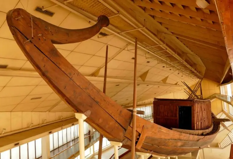 ومن بين أبرز المعروضات أيضًا مركب الملك خوفو، أو ما يُعرف بـ”مركب الشمس”، الذي يُعتبر من أقدم وأكبر السفن الخشبية في التاريخ. اكتشفه الأثري المصري كمال الملاخ عام 1954 بجوار الهرم الأكبر، حيث عُثر على أجزائه المفككة بعناية في حفرة خاصة، قبل أن تُرمم وتُعاد تجميعها في عمل استغرق نحو عشر سنوات. يبلغ طول المركب 43.5 مترًا، ويعكس تصميمه الفريد معرفة المصريين القدماء بعلم الملاحة وهندسة السفن.
