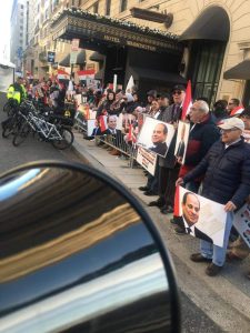 الجالية المصرية بالولايات المتحدة تنظم وقفة أمام مقر إقامة الرئيس السيسي بواشنطن للترحيب به