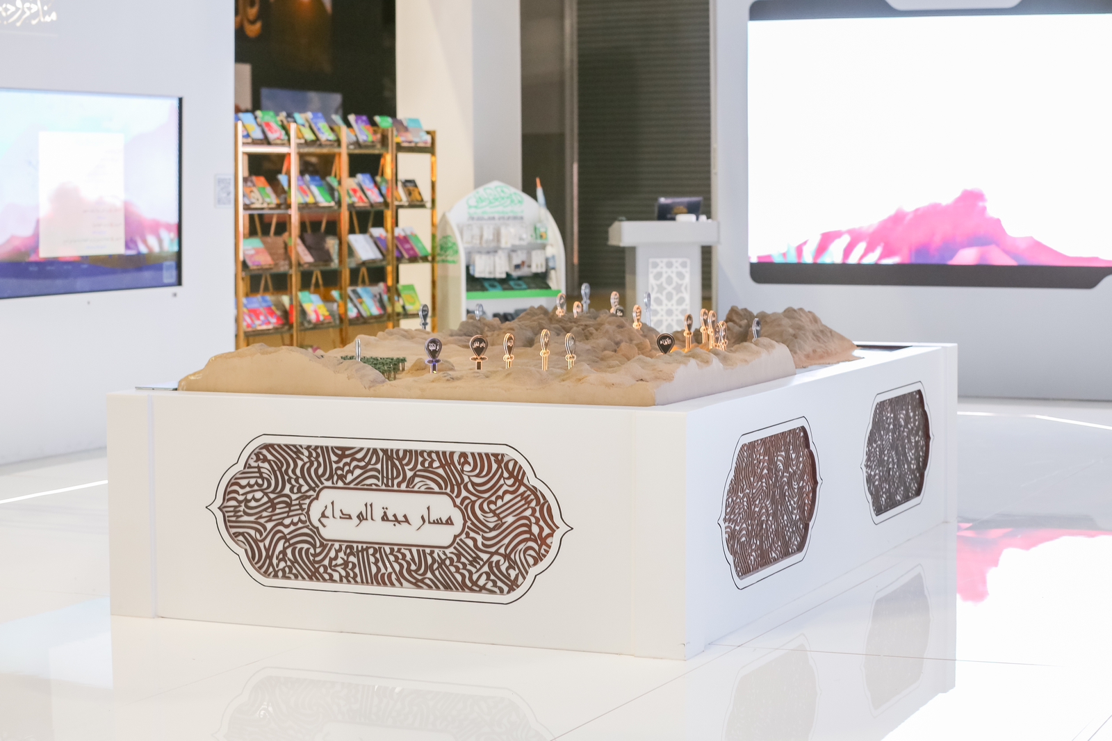 كما يشتمل المتحف على قسمٍ إبداعيٍّ كبيرٍ عن الحج والعمرة والزيارة، وقسم الحجرة النبوية الشريفة، وهو قسمٌ خلابٌ يأخذ الزائر وكأنه داخل تلك الحجرة الشريفة عبر تقنية الواقع الافتراضي، والواقع المعزز، إضافة إلى قسم: “أعظم منبر بالدنيا”، وهو قسم يتعرَّف فيه الزائر على منبر النبي صلى الله عليه وسلم، وصفته وكأنه يراه، وقسم يشتمل على عرض وثائقي لجهود المملكة العربية السعودية في خدمة القرآن الكريم والسنة الشريفة والحرمين الشريفين، وخدمة ضيوف الرحمن.
