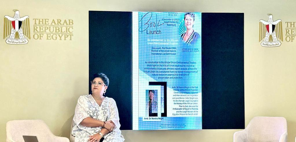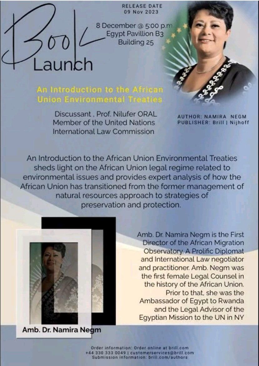 أقام الجناح المصري في مؤتمر التغيير المناخي COP28 بمدينة إكسبو بدبي ندوة حفل توقيع كتاب السفيرة الدكتورة نميرة نجم مديرة المرصد الافريقي للهجرة بالإتحاد الأفريقي مجلد “مقدمة لمعاهدات الاتحاد الأفريقي البيئية” باللغة الإنجليزية من إصدار دار نشر بريل الدولية بهولندا .